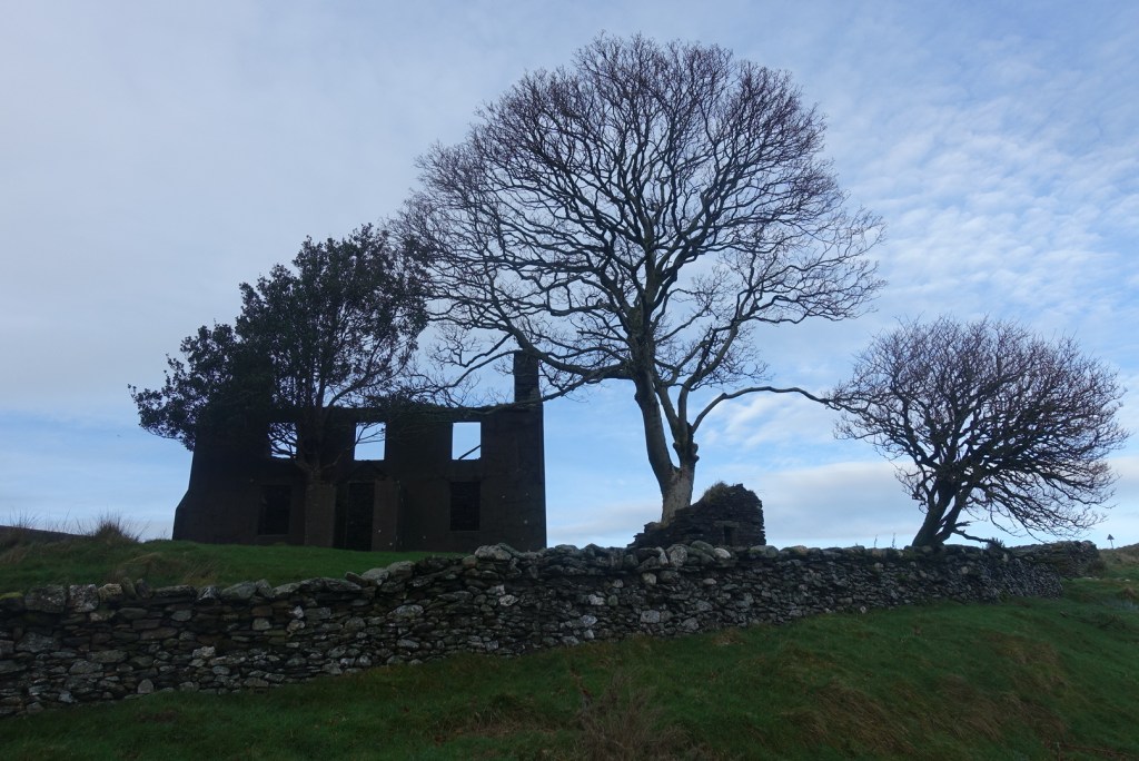 There is a very strange grid to walk over, which is semicircular with horizontal bars. Here there is a tremendous view of Glen Dhoo above Ballaugh. I then took a track leading up the delightful valley with Slieau Dhoo immediately opposite. This is a great lunch spot, with lots of grass and even a makeshift natural bench if everyone wants to sit in a row 🙂 There is small amount of ascent on this pleasant footpath which leads to over the brow of the hill and down to the yet another stony track. Don’t be put off by this path saying “road closed’ at either end. I am sure walkers are welcome, but the bikers are not. On some maps, there is a right of way immediately opposite leading down to Druidale, and another one a short distance to the right. In reality, these are in a bad state of repair and give the impression of being purposely neglected. About half a mile away, there is a new signpost, but it is not in the place shown on the map, although it does join up with another footpath that is in a slightly better state of repair.
