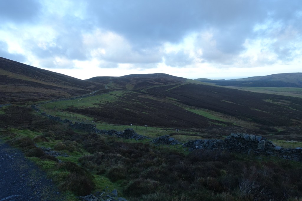 The path off Freoaghane is steeper than the climb up, but very friendly. It is a wide, grassy slope and a very enjoyable descent. As you walk down you can map out where you want to go next slightly off the beaten track, which is exactly what I did, as I wanted to avoid more stony tracks as much as possible. Eventually, it is necessary to meet the track again but only as far as the point where the path divides into two, one going to Kirk Michael, the other to Ballaugh.