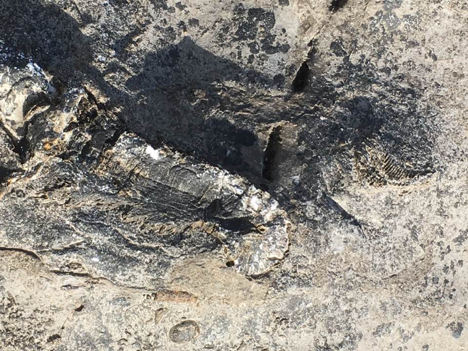 We then moved further up the beach beyond the Wildlife Trust Centre and noticed that the limestone has more folds in it than at our original location. We were also shown some dykes lying on fault lines, which are gaps in the limestone where molten rocks from deep in the earth had intruded at some point. This material is known as dolerite, but is softer than the surrounding limestone so only some deposits remain. We were told that what we see at the beach is just the tip of the ‘iceberg’ and that the dykes run for kilometres inland under the ground and also go deep into the earth. These faults are minor but together they form of patchwork of faults under the Isle of Man, but don’t worry, an earthquake is not imminent (I hope).